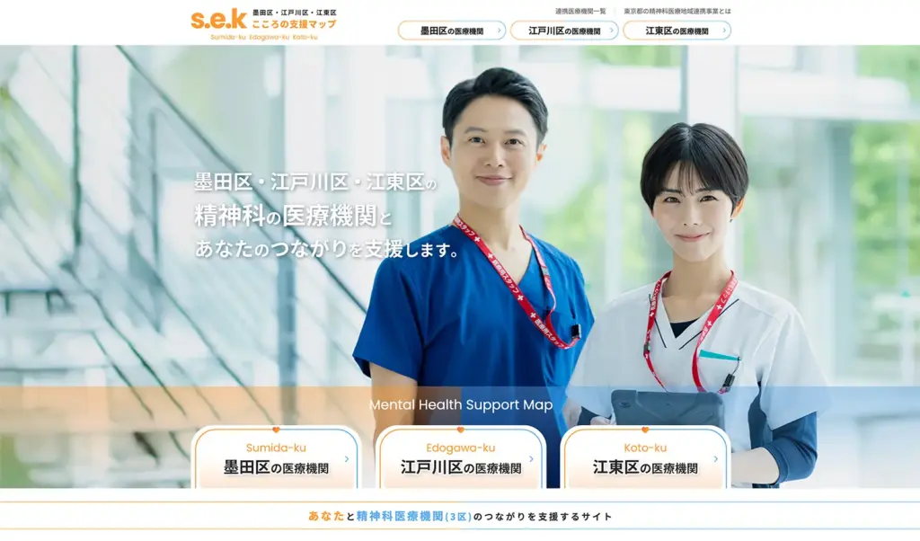 当サイトは、墨田区・江戸川区・江東区の地域にある『精神科・心療内科の医療機関』を簡単に検索できます。 東京都の精神科医療地域連携に協力している医療機関が対象であり、近隣の診療所を受診することで、連携するすべての医療機関の診療を受けることにつながります。 必要に応じて、適切な医療機関をご紹介いたします。